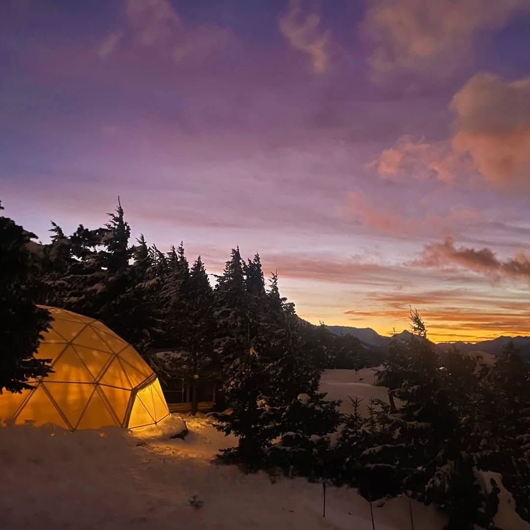 Ascenso al Cerro Otto para vivir una experiencia única de montaña. Recepción cálida, trekking con raquetas al atardecer y regreso al domo para disfrutar de una cena en un entorno íntimo, rodeado de nieve y silencio.