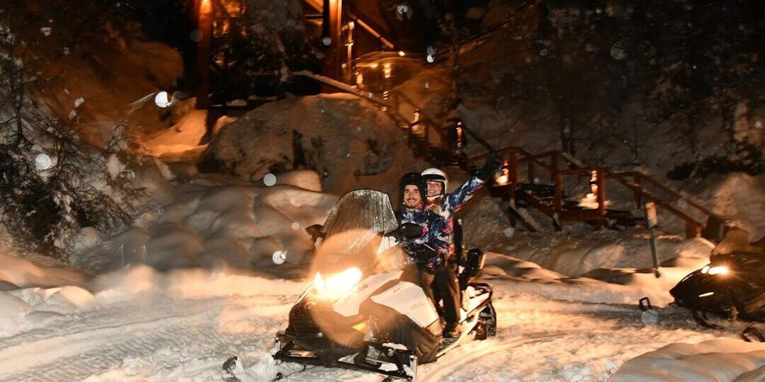 La Cueva ofrece una experiencia exclusiva en motos de nieve y una sorprendente propuesta gastronómica en un increíble y cálido ambiente nocturno.